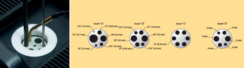 - La relación del diámetro del orificio con respecto a la vaina del sensor que se va a introducir: Los orificios del inserto no deben ser tan ajustados como para trabar el sensor ni tan holgados como para entorpecer el contacto.