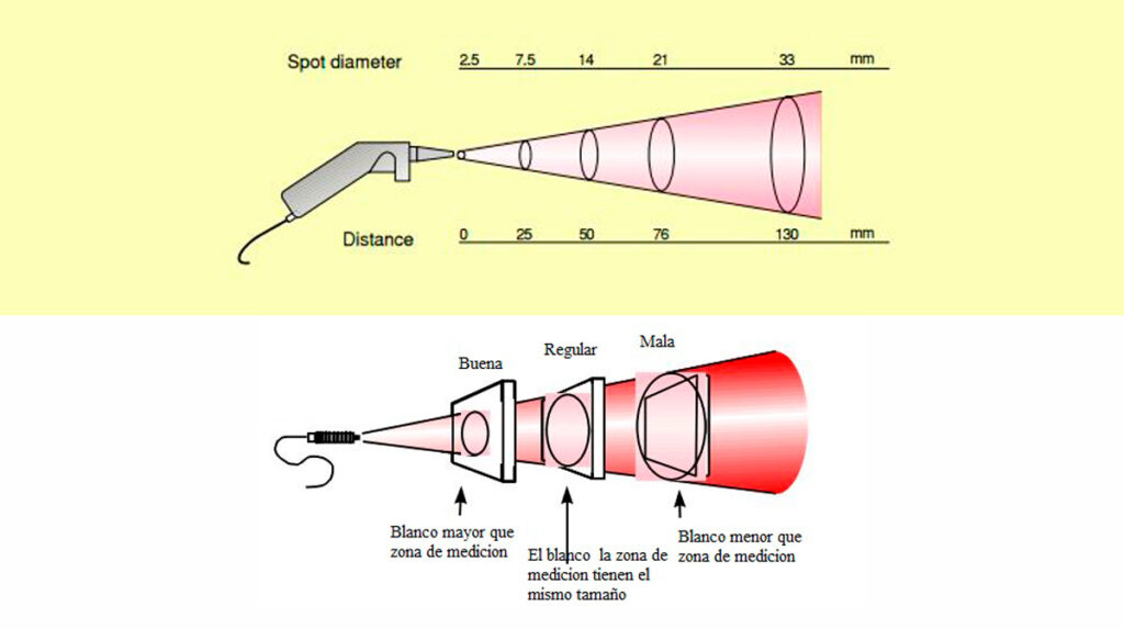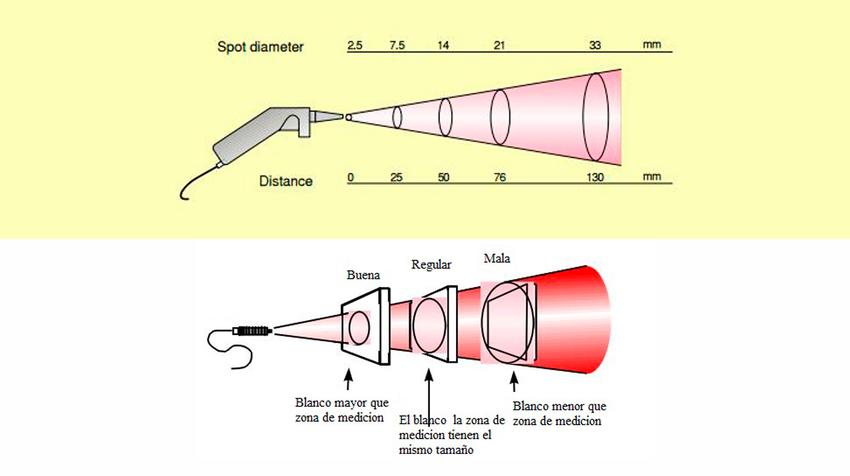 Por lo tanto al usar termómetros infrarrojos se debe tener en cuenta la superficie de medición y la distancia a la superficie ya que a mayor distancia mayor probabilidad de medir un área distinta al deseada