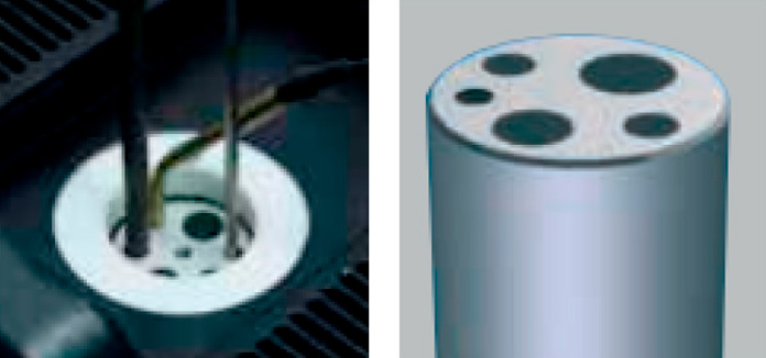 Algunos bloques poseen además una indicación adicional, ésta se utiliza con una sonda de temperatura externa al bloque. El objetivo es colocar esta sonda dentro del inserto para conocer más en detalle la temperatura desarrollada dentro del mismo.