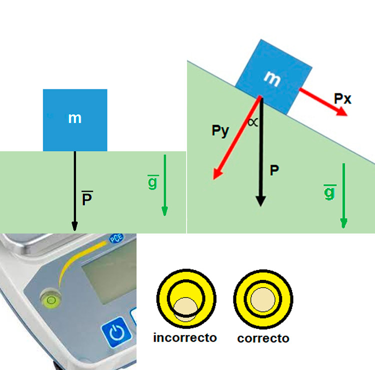 Si queremos saber la masa de un objeto pesandolo en una balanza es necesario que la dirección de la Fuerza Peso esté en la misma dirección que la gravedad para que no se generen descomposiciones de dicha fuerza.