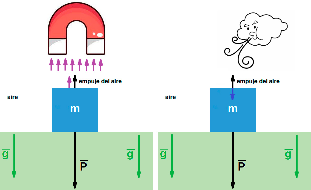 Por otro lado, así como un ser humano flota en el agua, el objeto que pesamos flota en el aire. Por lo que realmente estamos midiendo es el resultado de la diferencia del peso menos el empuje.