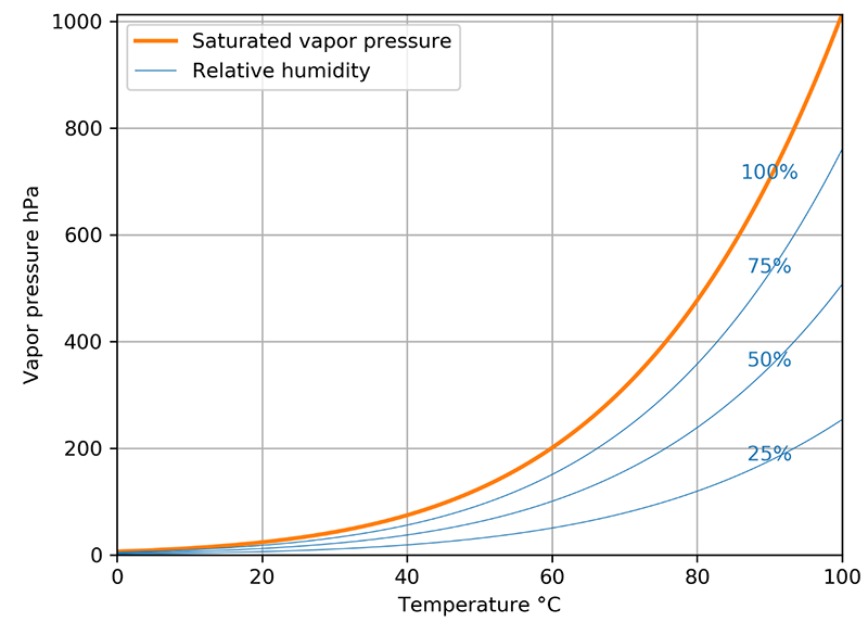 La cantidad máxima de agua gaseosa viene determinada por la temperatura: cuanto mayor es la temperatura, mayor es la presión parcial del vapor de agua, es decir, hay más agua disuelta en el aire.
